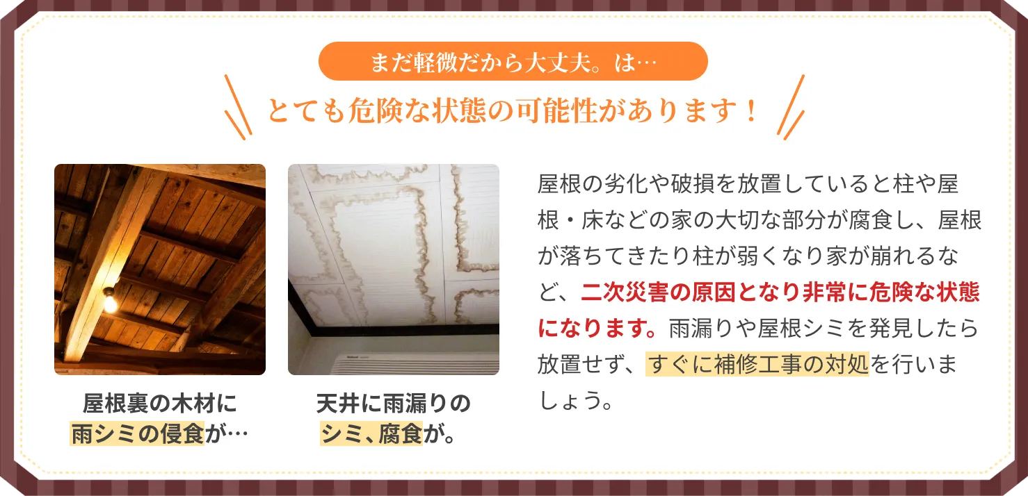 困った時の雨漏り・屋根修理屋さんでは詳細な見積書を作成しておりますので、無駄な価格上乗せをしないことをお約束いたします。