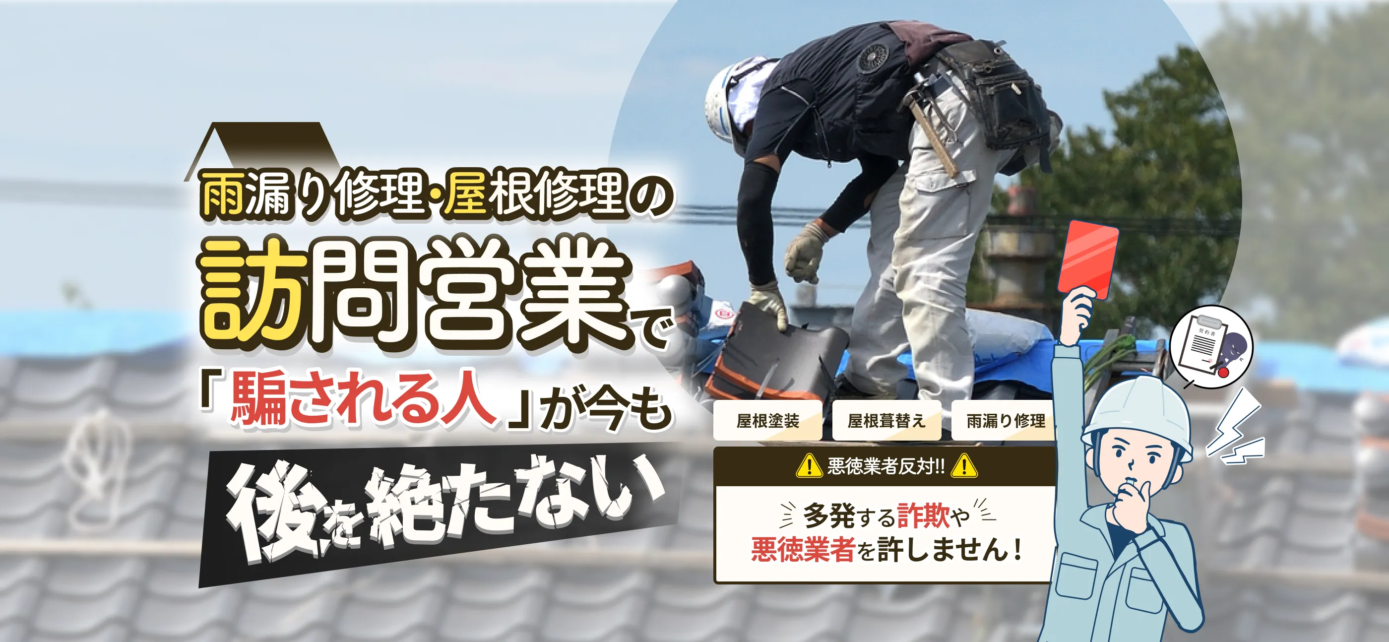 近年、屋根工事はボッタくりや手抜き施工の悪徳業者が多い業界です。